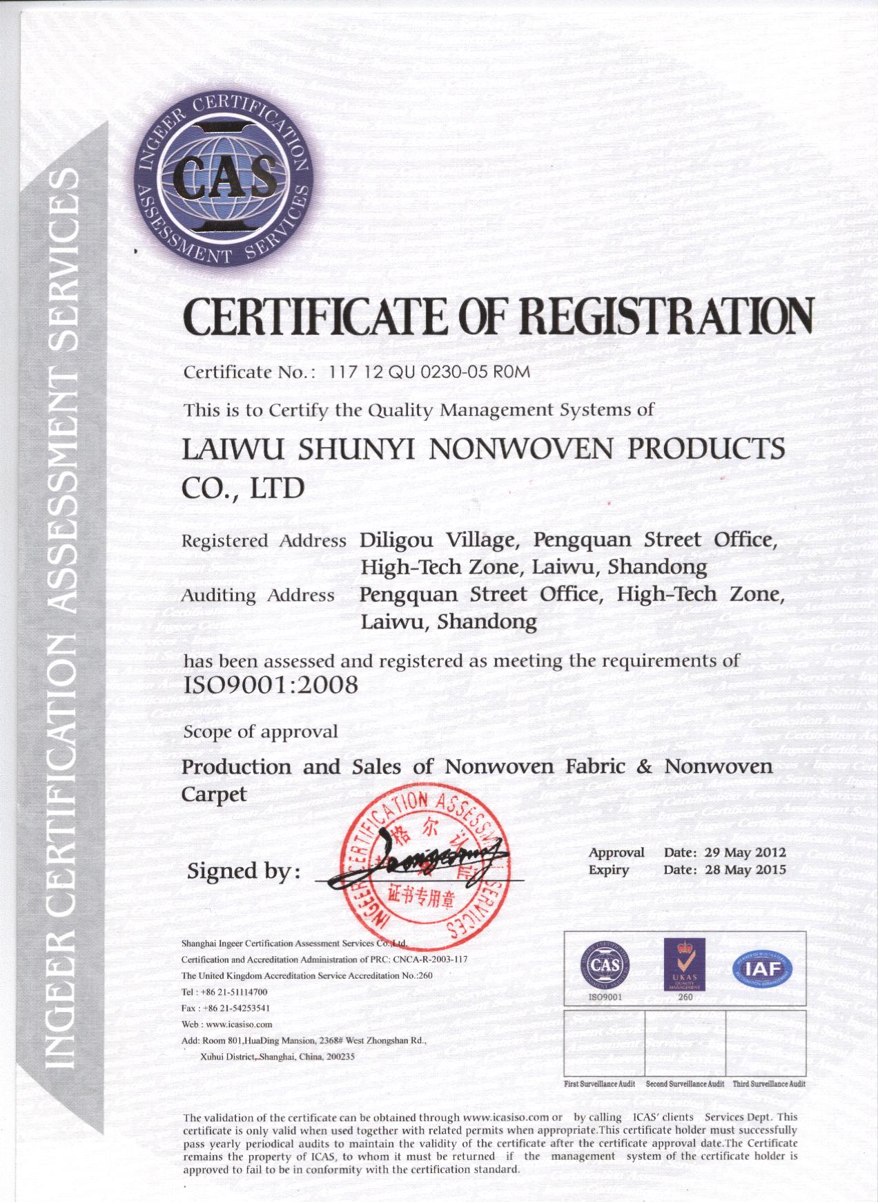 • 萊蕪順意無紡制品有限公司年產(chǎn)2000噸無紡制品項(xiàng)目竣工環(huán)境保護(hù)驗(yàn)收的公示