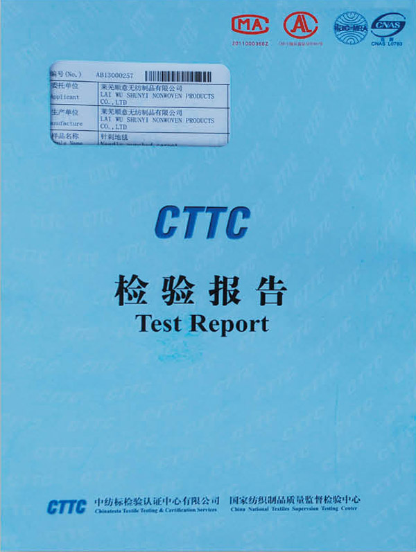 • 本公司生產(chǎn)的無紡阻燃地毯檢測合格