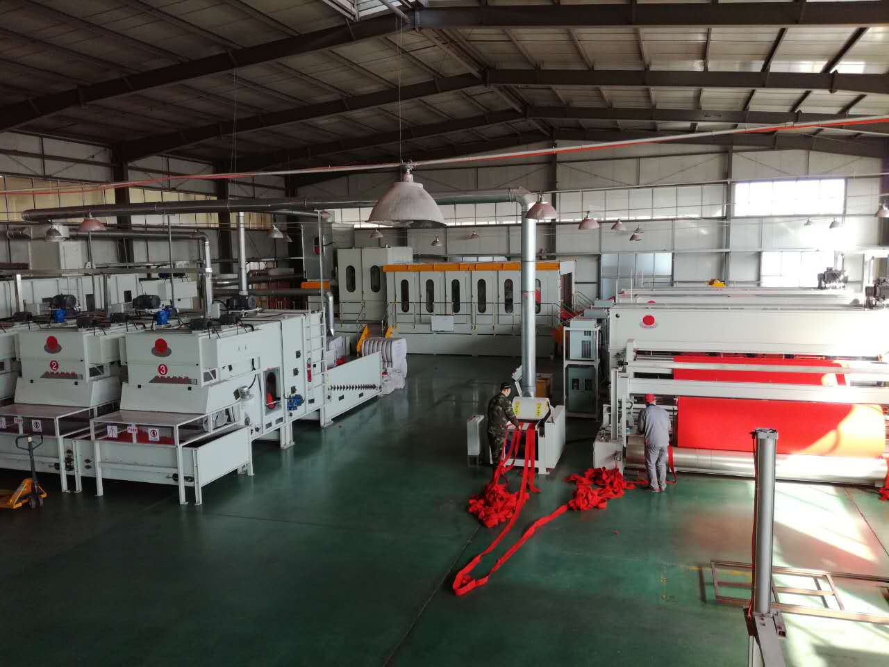 公司總投資1億余元,首期工程已完成投資3000萬元。現(xiàn)已建設(shè)標(biāo)準(zhǔn)廠房15000余平方米、引進(jìn)多條無紡布生產(chǎn)線。其中,針刺無紡線4條、起絨機(jī)兩臺、電腦提花機(jī)1臺、條紋機(jī)1臺、地毯整理烘干定型線兩套。
